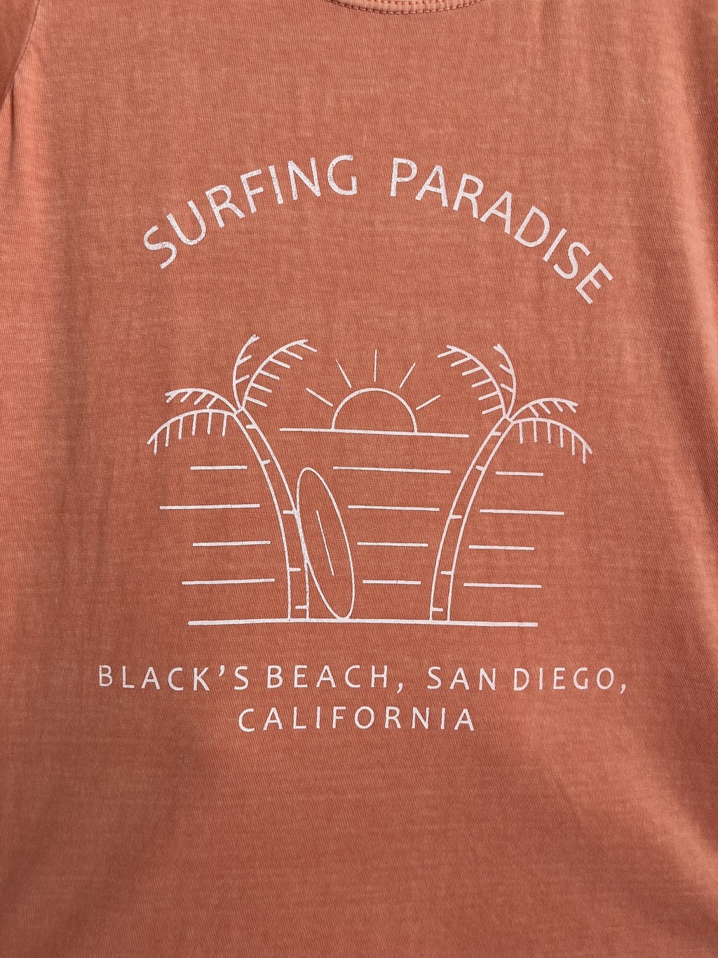 A Camiseta Babylook Surfing Paradise é a escolha ideal para quem busca estilo, conforto e um toque de descontração. Com sua lavagem estonada salmão e estampa descontreaída em branco, ela traz um ar jovem e moderno, sendo perfeita para os dias quentes de verão.
