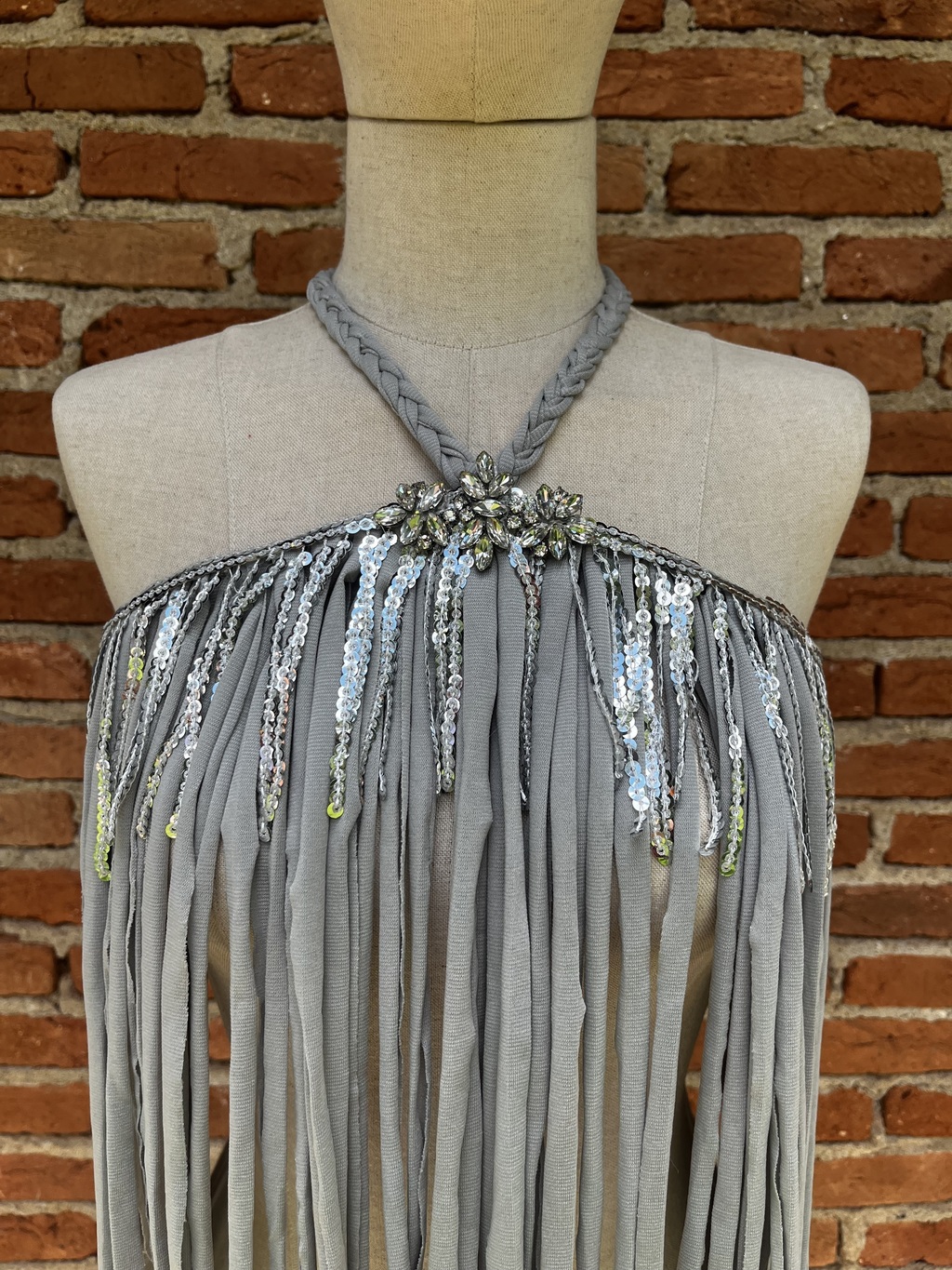 Arrase no Carnaval e em diversas ocasiões especiais com o Top Franja Fio de Malha! Esta peça exclusiva e artesanal combina o brilho vibrante das franjas de paetê com o requinte das pedrarias, criando um look ousado e único para você brilhar em qualquer evento.